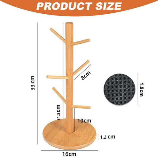 Wooden Coffee Mug Tree – Cup Holder Stand with 6 Hooks & Round Base